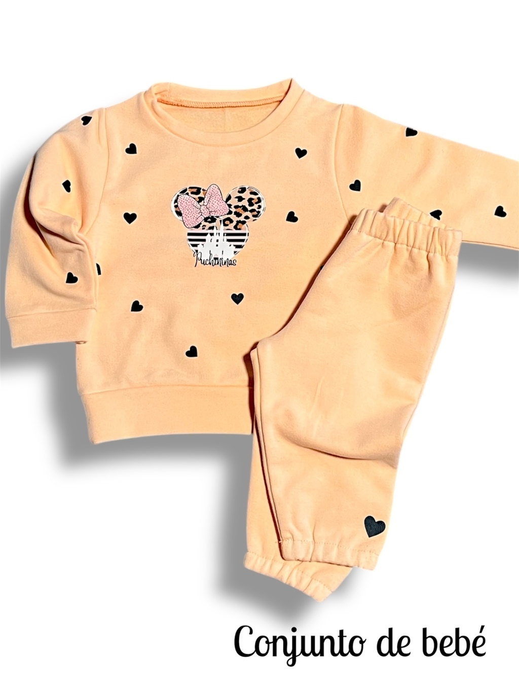 Conjunto de bebe de frisa termica 🧡 con estampa de Minnie al frente , y detalles de corazones negros Disponible desde 0 a 2 de niña!